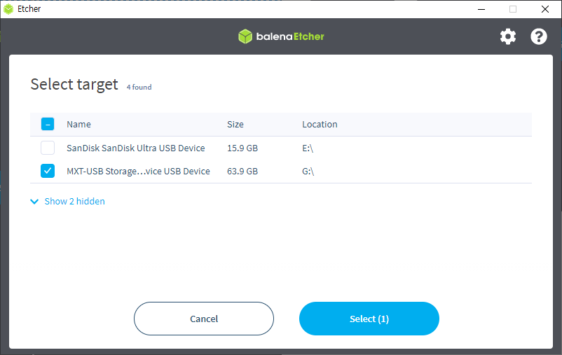 이 이미지를 etcher 로 SD카드에 다운로드 합니다. (일종의 dd 라고 보시면 됩니다.)
