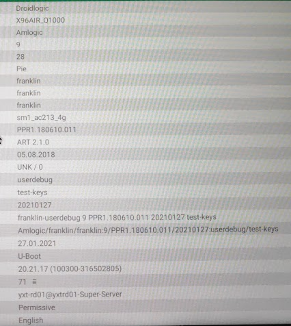 기기 코드네임을 보면 sm1 이라고 나옵니다. 본래 G?? 이런 이름으로 Amlogic CPU의 코드네임이 정해지는데요.