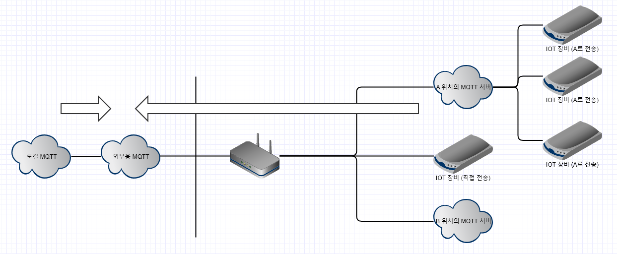 그러면 로컬 MQTT <---> 외부 MQTT 이렇게 연동이 되어야 하고, 전체적인 그림은 아래와 같이 됩니다.